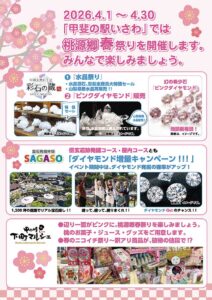 【4/1(水)~4/30(木) 彩石の蔵・SAGASO・甲州下町マルシェ】桃源郷 春祭り開催🌸