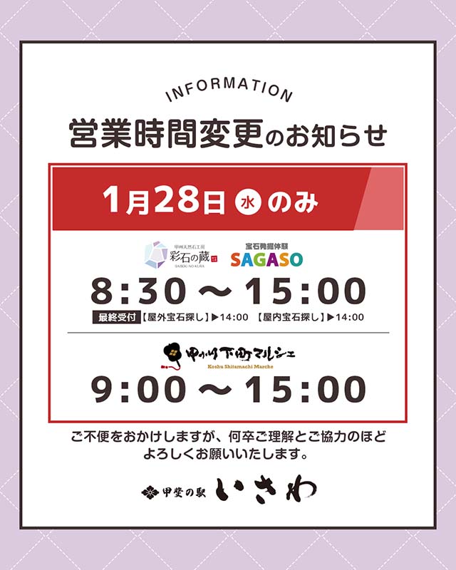 こちらでも「宝石探し」をお楽しみいただけます。17:00以降に「宝石探し」をご希望の方は、『やまなしフルーツ温泉ぷくぷく』をご利用ください。